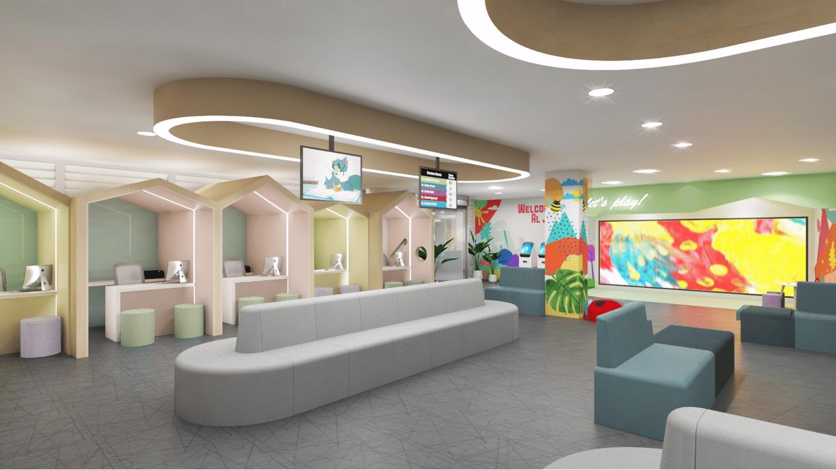 Nestled within the hospital’s embrace, Al Jalila unfolds into a vibrant sanctuary for our little heroes. Outdoors, a giant caterpillar transforms into a butterfly, symbolising positive change and growth. Inside, a cocoon-shaped desk reveals a magical cluster of butterflies that respond to little adventurers and the time of day. Corridors become colourful pathways, blending nature’s touch with cost-effective charm. A Teen Lounge turns emotions into art, embracing the ever-changing seasons of feelings. This building is not just a hospital; it’s a magical journey for our little ones.