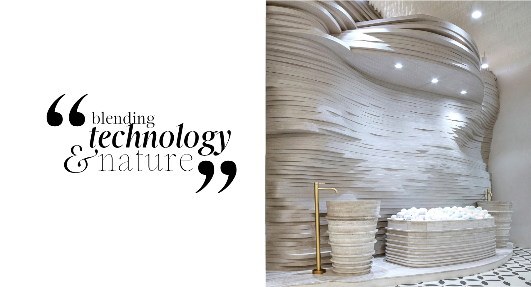 IXORA, a COSMOS-certified organic luxury skincare brand, offers an immersive space that blends modernity with ancient inspirations. The design incorporates Mesopotamian, Roman, and Egyptian influences through natural materials and architectural elements. Features such as Ixora flower petals, Roman-inspired arches, custom-designed hieroglyphs, and a hand-painted central “super” dome highlight the brand’s historical skincare roots. Sustainable materials and locally sourced elements underscore its commitment to eco-friendly practices.