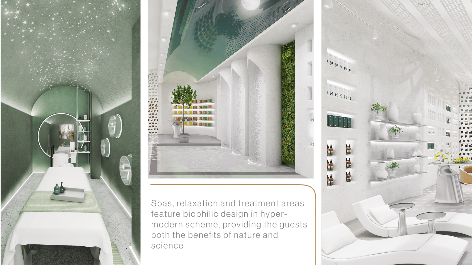 MOROX redefines Moroccan hospitality in Ifrane, Morocco, with a futuristic boutique hotel that seamlessly blends technology and nature. Nestled in an Alpine-styled town, the hotel offers a hyper-biophilic experience, reconnecting urbanites with nature’s serenity. The lobby honours Ifrane’s cave-dwelling history, while corridors feature custom wallpaper by Moroccan artist Noureddine Daifallah. The rooftop spa provides a rejuvenating atmosphere with meditation pods and stargazing opportunities, challenging traditional Moroccan aesthetics and inviting visitors on a surreal journey of wellness and discovery.